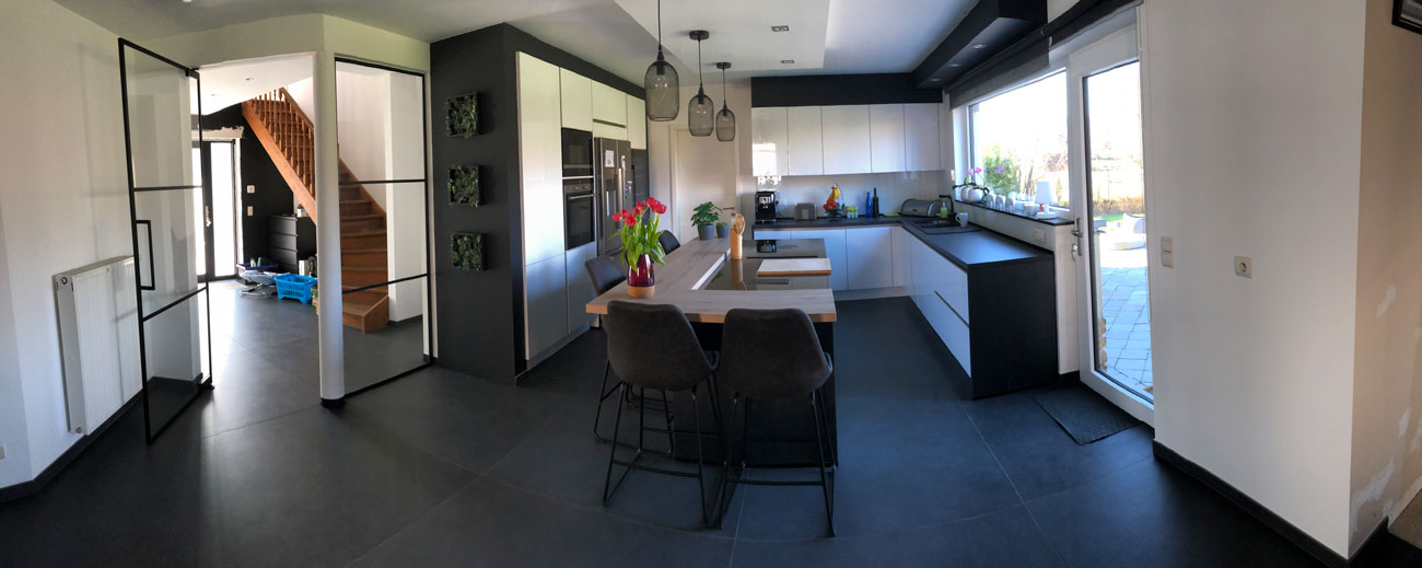 Rénovation du rez-de-chaussée d’une maison unifamiliale pour lui apporter modernité et lumière et ajout d’un espace bureaux à l’étage